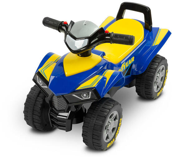 Műszaki adatokJellemzőÉrtékAjánlott életkor12–36 hónapMéret60 × 30 × 40 cmTermék súlya2,4 kgTerhelhetőségmax. 25 kgÜlés mérete25 × 17 cmÜlésmagasság24 cmHáttámla magassága6 cmHáttámla – kormány távolsága34 cmCsomag mérete60 × 25,5 × 30 cmA Goodyear Quad tökéletes választás minden olyan kisgyerek számára, aki szereti a mozgást, az autókat és az izgalmas kinti játékokat !